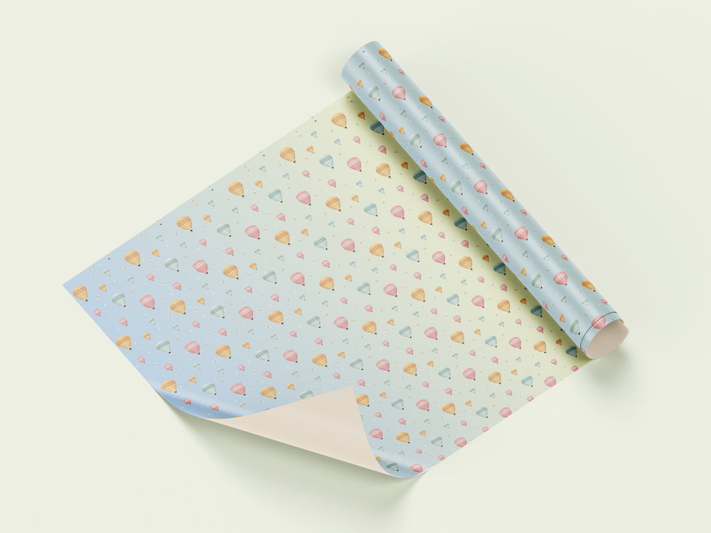 Colorful air balloons adorn this delightful wrapping paper, bringing a sense of adventure to every gift.